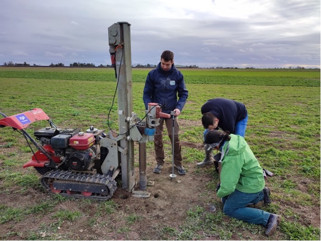 Des mesures de densité apparente ont été réalisées par les équipes de l’INRAE du site d’Estrées-Mons grâce à un gamma-densimètre. Puis des échantillons de terre ont été prélevés sur les horizons 0-20, 20-40 et 40-60 cm.