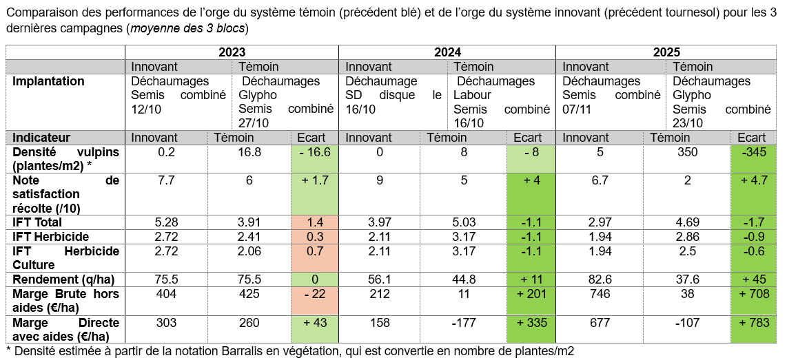 En 2024 et 2025, les performances de l’orge sont meilleures dans le système innovant :